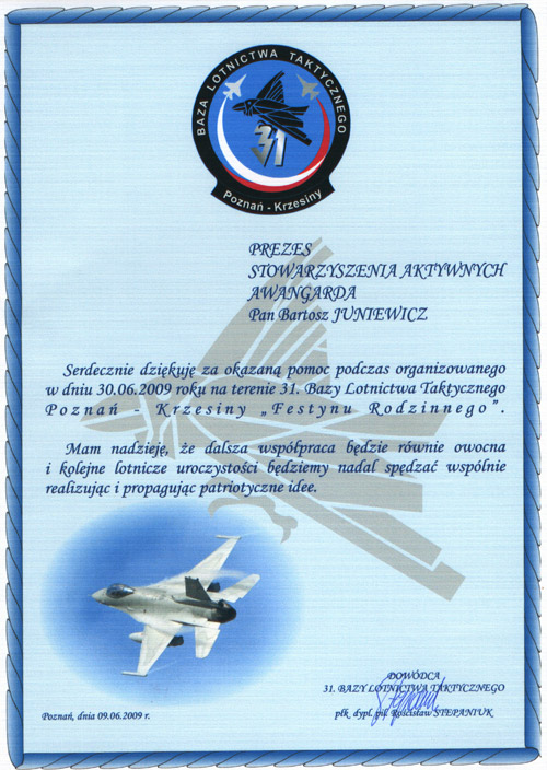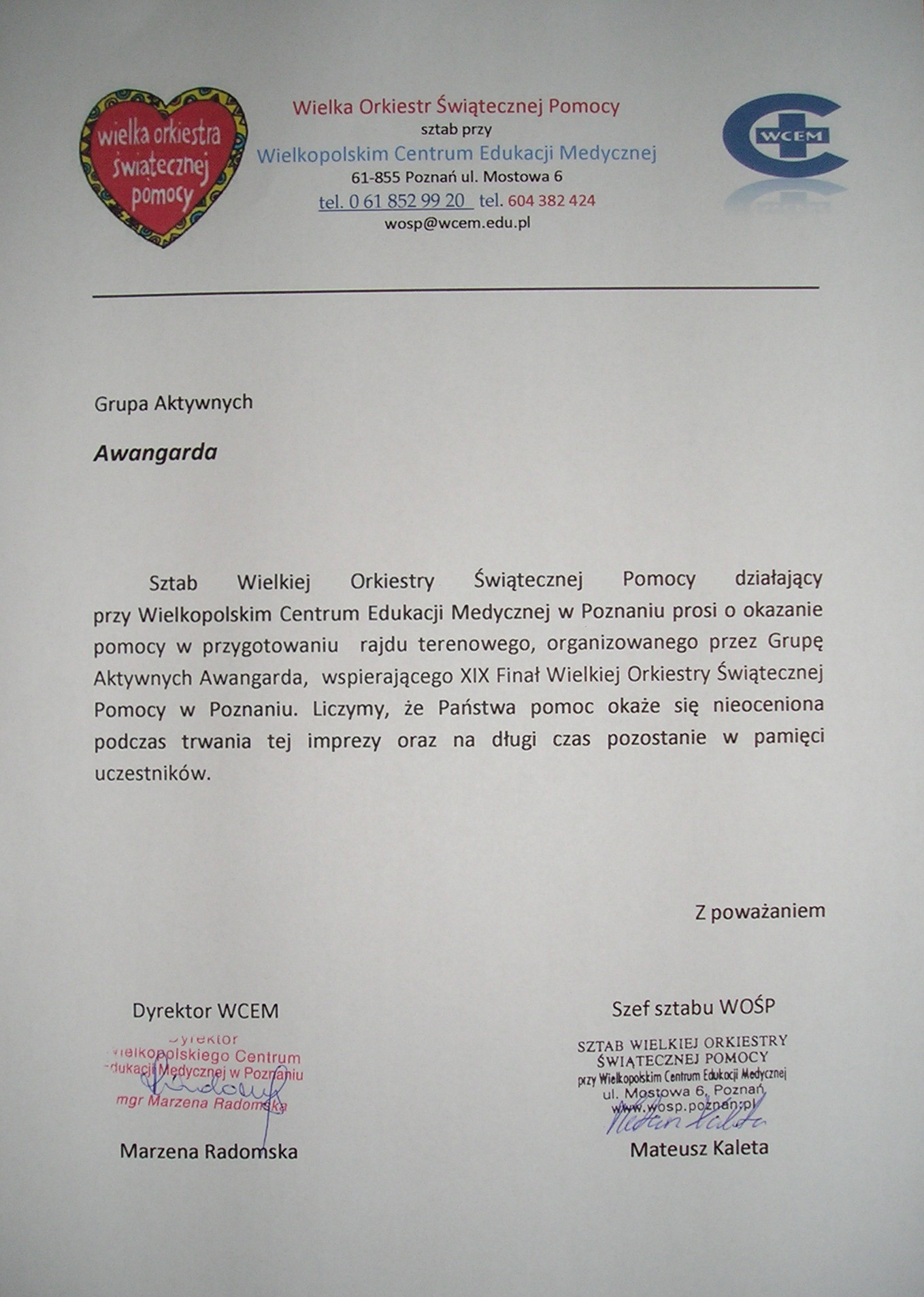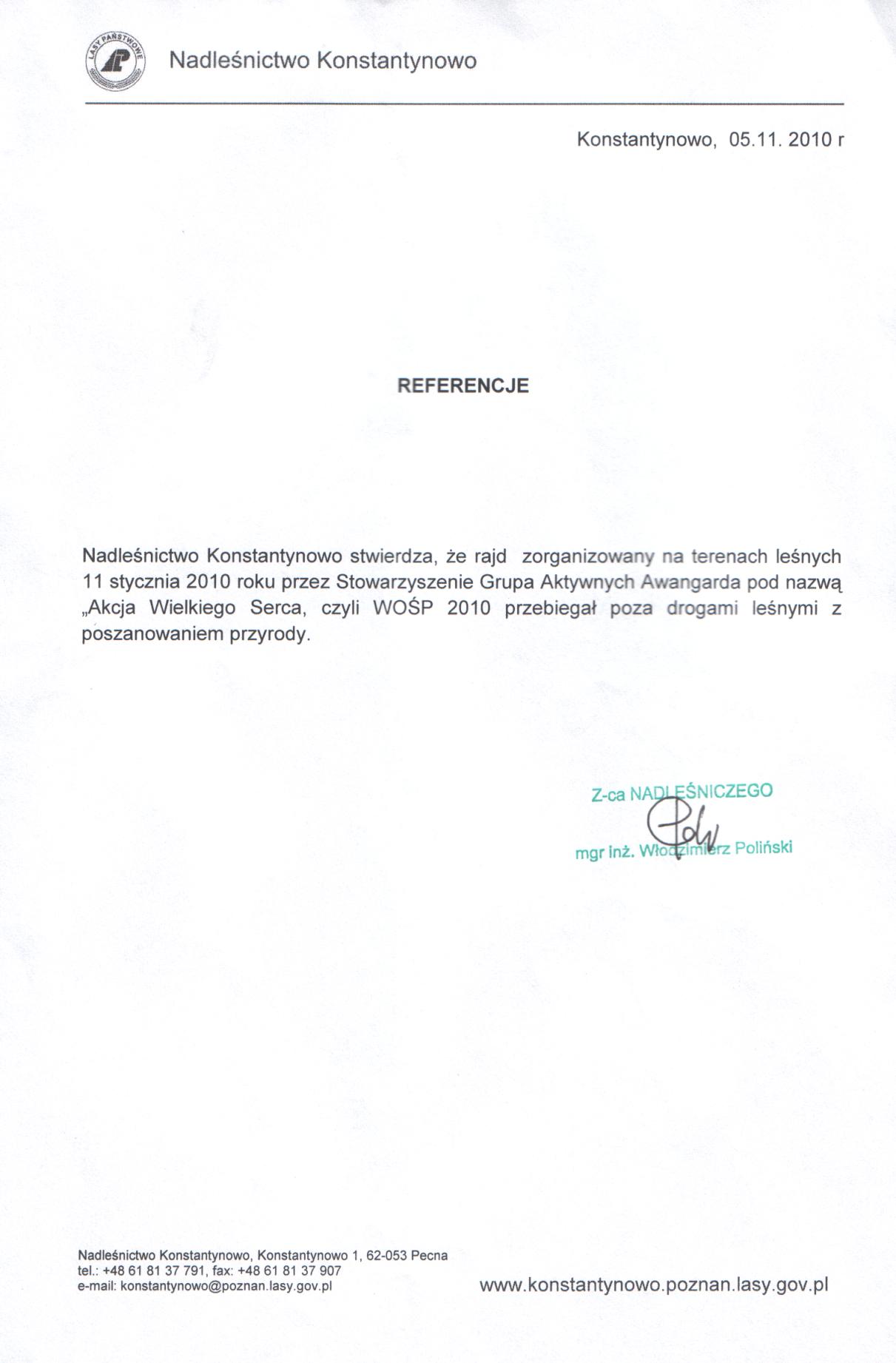 referencjemy dla nich ... oni dla nas Sztab Wielkiej Orkiestry Świątecznej Pomocy przy Wielkopolskim Centrum Edukacji Medycznej w Poznaniu Nadleśnictwo Konstantynowo Zespół Szkół Rolniczych w Grzybnie 31. Baza Lotnictwa Taktycznego Poznań - Krzesiny